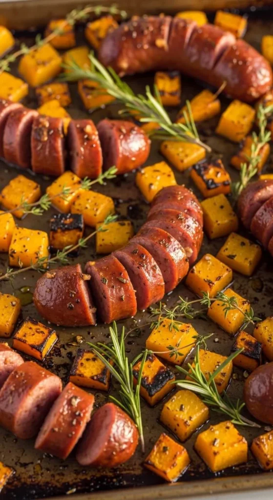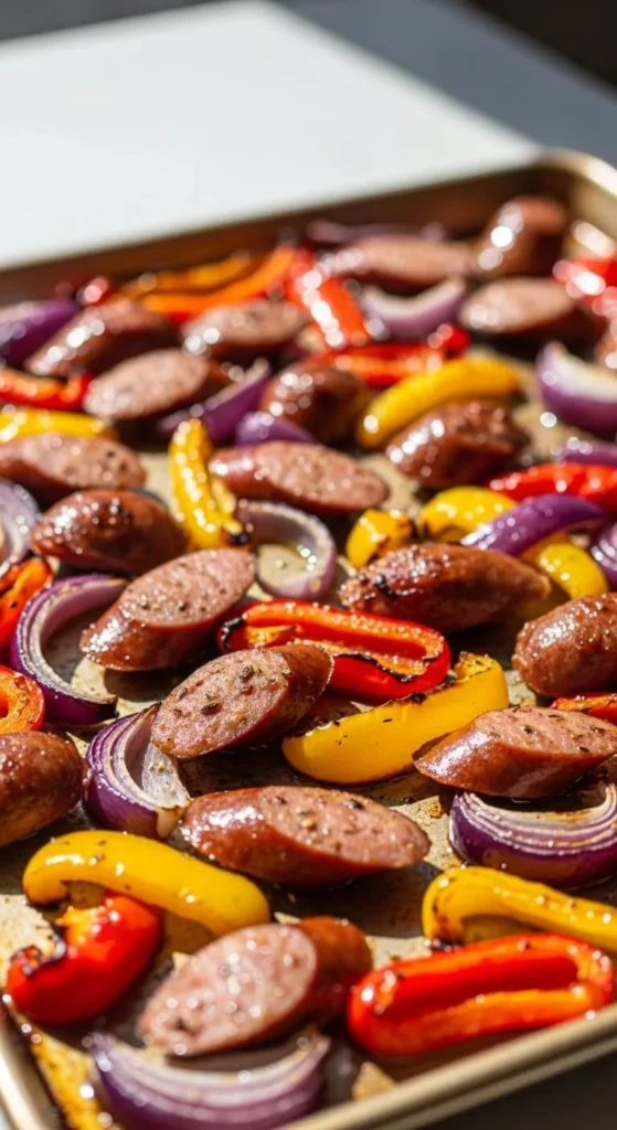 Sausage adds flavor without extra seasoning. Everything roasts together.
