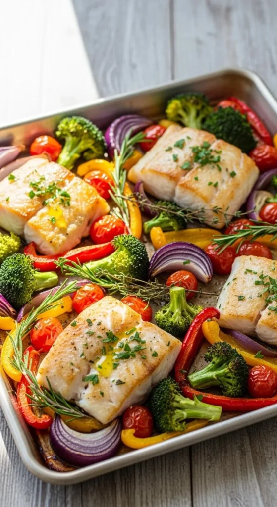 Everything cooks evenly on one pan. Serve straight from the tray for easy cleanup.