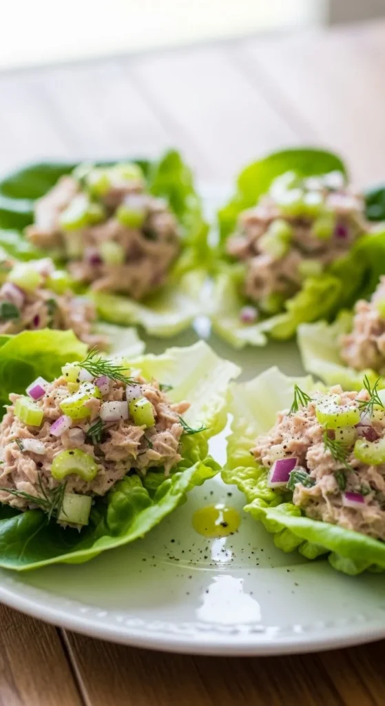 This lunch skips bread and still feels filling. Lettuce adds crunch and keeps things light. It works well for quick meals and warm days. Keep tuna simple and avoid heavy add-ins.
