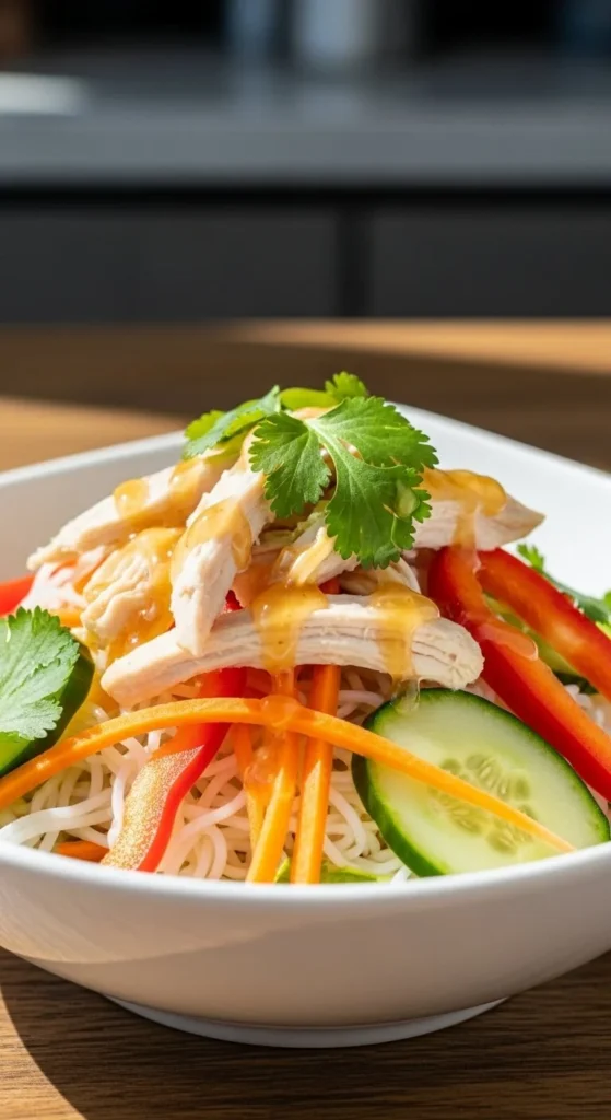 This bowl feels refreshing and filling. It works well for packed lunches and stays good for hours. Use leftover chicken to save time.