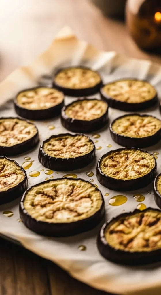 Slice eggplant and bake with oil and salt. Flip once for even browning.