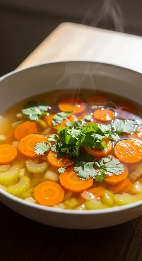 Simmer vegetables in broth until tender. Keep seasoning simple.