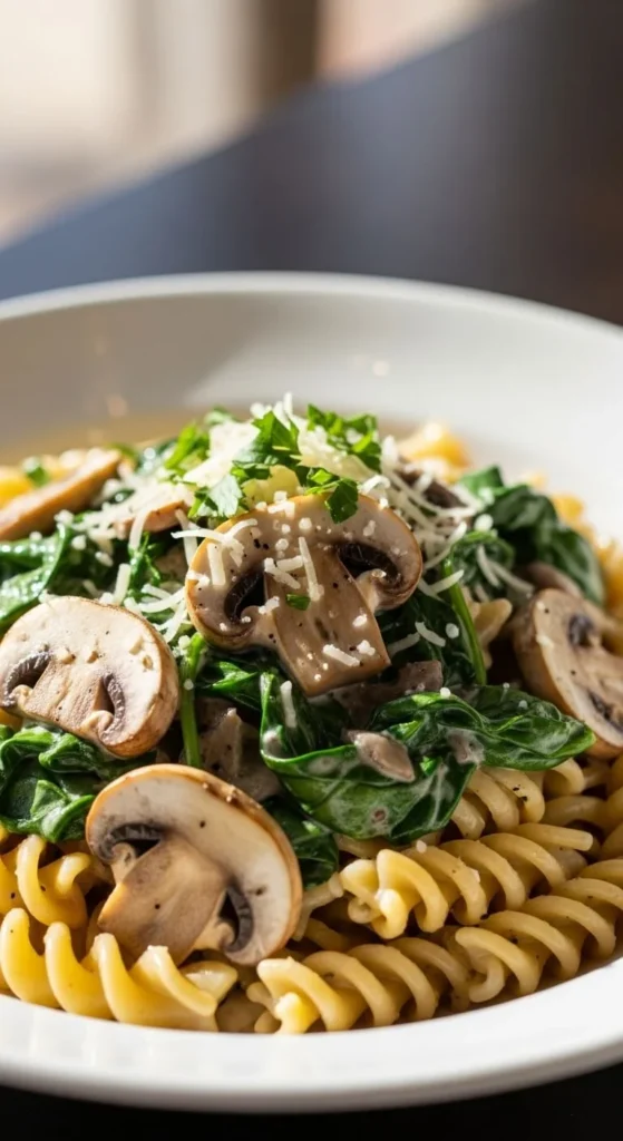 2. Creamy Spinach Mushroom Pasta
