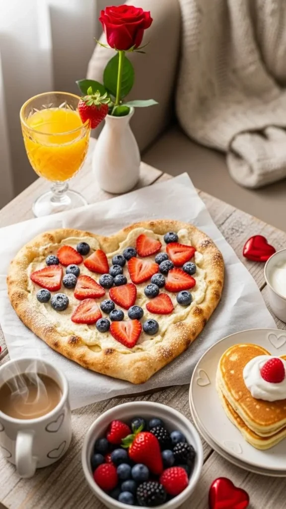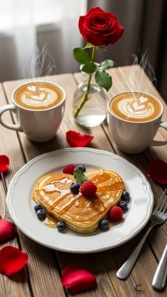 Heart-shaped pancakes are playful and easy to pull off. Use a squeeze bottle or cookie cutter to guide the shape. A simple pancake mix works fine. Add a pinch of cinnamon or vanilla if you want extra warmth. Stack two or three pancakes and drizzle maple syrup slowly so it pools on the plate.