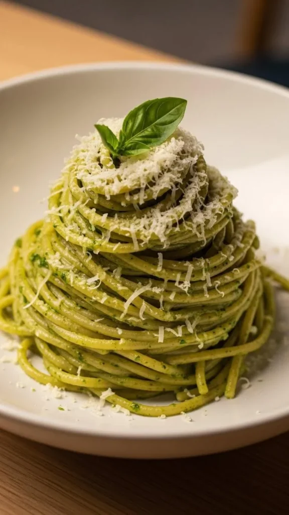 Pesto adds big flavor fast. Mix with cream or milk for a smooth sauce. Use store-bought pesto to save time. Serve with pasta and grilled chicken if desired. Keep the plating clean and simple. A few cherry tomatoes add color.