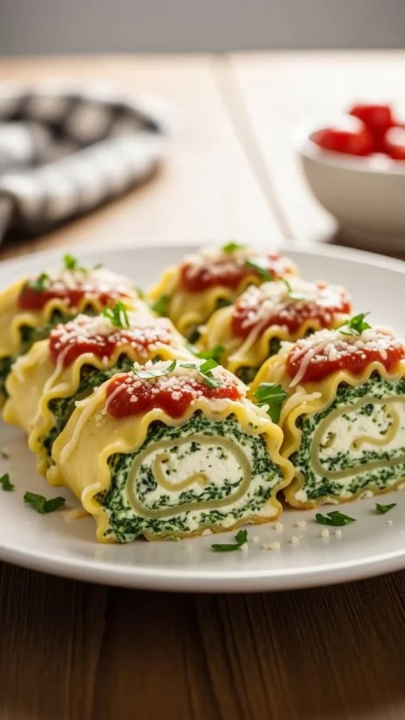 Lasagna rolls feel fancy but are easy to portion. Use no-boil noodles and a simple filling. Bake in sauce until bubbly. Serve two rolls per plate. This keeps things tidy and romantic.