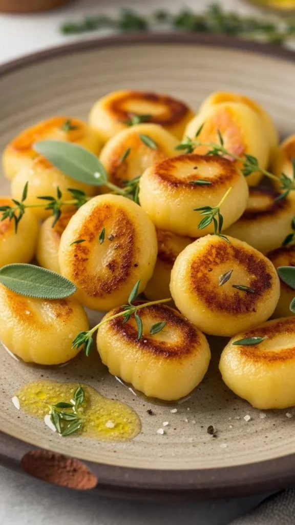 Gnocchi crisps beautifully in a pan. Use store-bought to save time. Butter and herbs create flavor fast. Serve with a small side salad.