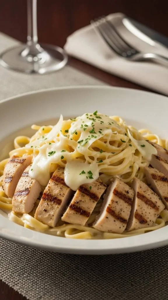 Chicken Alfredo feels familiar but still romantic when served right. Use fettuccine and slice the chicken thin so it cooks fast. Cream, butter, garlic, and parmesan create the sauce without extra steps. You don’t need heavy seasoning. Salt, pepper, and a little nutmeg go a long way. For budget savings, cook the sauce while the pasta boils. One pan, one pot. Serve in wide bowls and finish with grated cheese. Add frozen broccoli or spinach for color and balance. A store-bought garlic bread keeps things easy. The key is timing. Serve immediately while the sauce is glossy. Smaller portions make it feel refined and intentional.