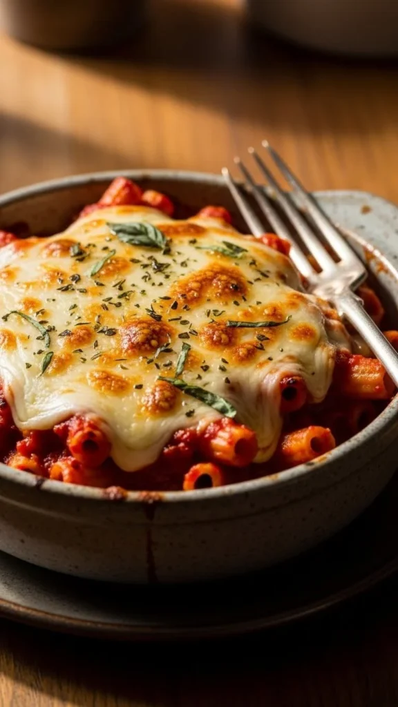 Baked ziti feels like comfort food from a café. Use a small baking dish to keep portions controlled. Pasta, sauce, and cheese layer easily. Add ground chicken or mushrooms if desired. Bake until bubbly and golden. Serve with a simple salad. The individual dish makes it feel personal.