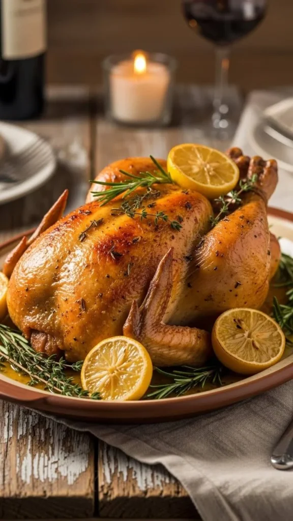 A small roasted chicken feels classic and romantic. Season with lemon and herbs. Roast until golden. Serve sliced neatly on plates. Use leftovers for lunch the next day. Pair with roasted vegetables for a complete meal. The aroma sets the mood before you even sit down.