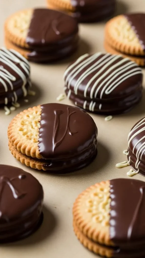 Set on parchment and chill briefly. Use dark or milk chocolate depending on taste. You can drizzle a second chocolate color using a spoon for contrast.