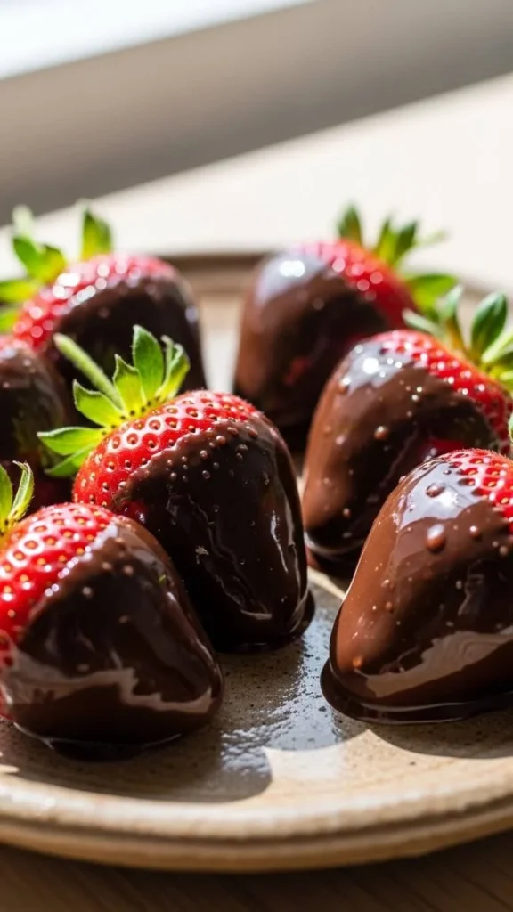 Chocolate-dipped strawberries feel special yet simple. Wash and dry strawberries completely. Moisture causes chocolate to slip. Melt chocolate in short microwave bursts, stirring often. Dip each berry and let excess drip off.